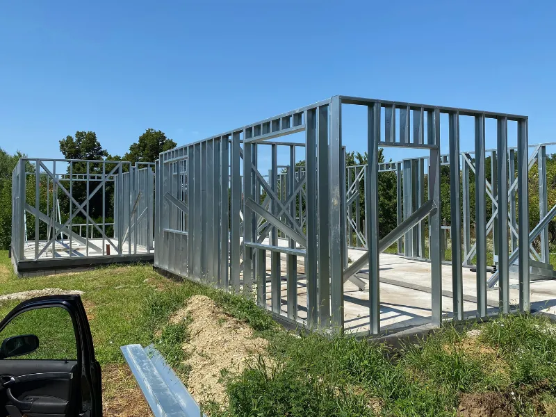 A könnyűszerkezetes házaink szerkezete előre legyártott acélvázból készül, így az építkezés kiszámítható, gyors és nem áll meg anyaghiány miatt.